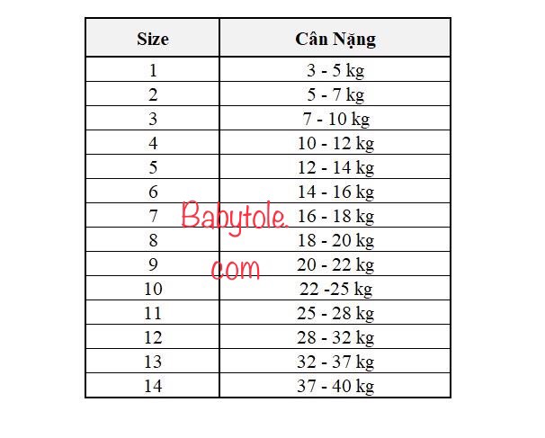Bảng size tham khảo - Size chỉ mang tính tương đối.