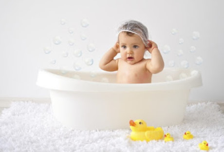 Khi cuống rốn đã rụng thì nhớ là làn da bé vẫn rất mỏng manh và nhạy cảm. Bạn chỉ nên đổ vào chậu (bồn) tắm của bé vài ba cm nước ấm. Kiểm tra độ ấm của nước bằng cách dùng cổ tay của bạn để đảm bảo nước tắm không quá nóng. Để làn da bé không mất nước, cần tắm cho con nhanh, chỉ trong vòng 5-6 phút. Nếu dùng kem dưỡng da, chỉ bôi chúng khi da của bé còn ẩm, dùng lòng bàn tay mẹ vỗ nhẹ lên da con, chứ không chà xát.