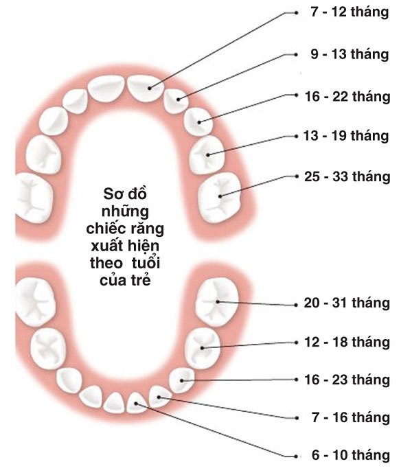 Răng bé thường xuất hiện theo một trình tự nhất định như sau: