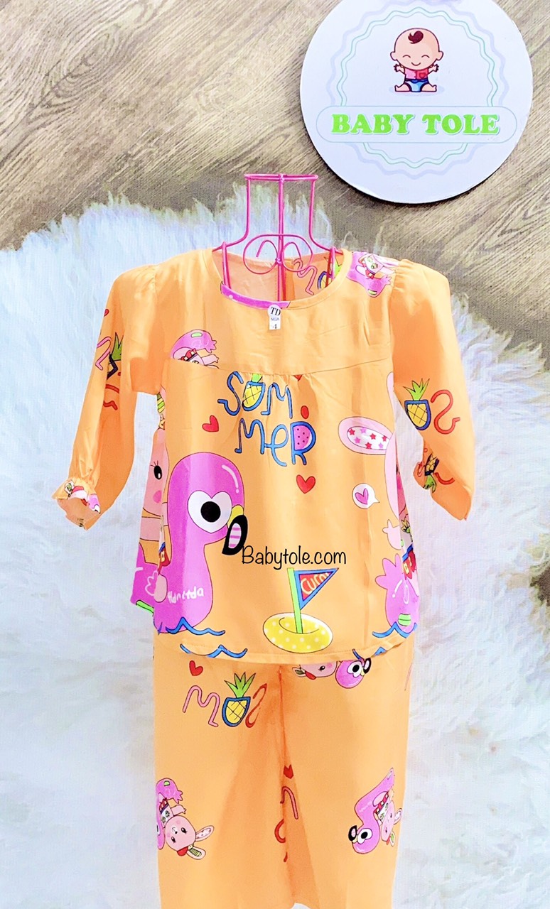 Quần áo trẻ em sỉ giá gốc - Đồ Bộ tole (ton) lanh trẻ em - bé gái quần dài ( tay dài quần dài ) cao cấp, giá gốc tại xưởng, không qua trung gian.